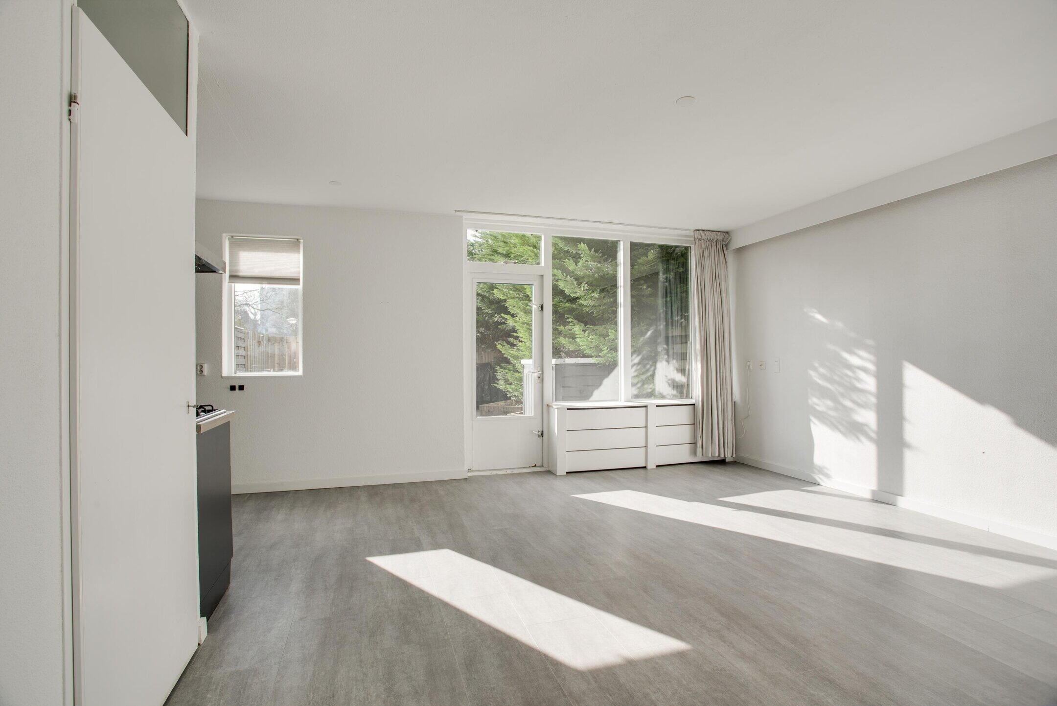 De woonkamer is ruim en licht opgezet en staat in directe verbinding met de keuken. De keuken is uitgerust met een gaskookplaat, oven, koelkast, vriezer en vaatwasser en biedt voldoende werk en kastruimte. Vanuit de woonkamer is bovendien een handige interne bergruimte bereikbaar. Via de woonkamer heeft u toegang tot de bijzonder ruime achtertuin op het zuidwesten, waar u heerlijk kunt genieten van de middag en avondzon.