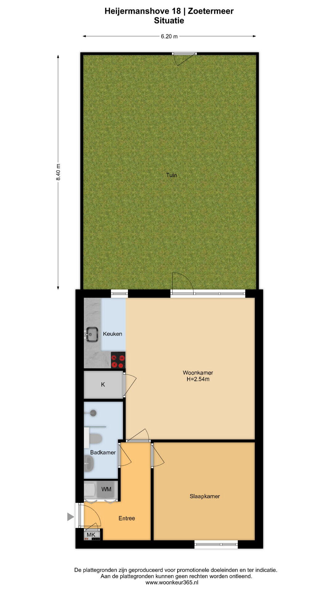 - 52 m² (8.4 meter diep en 6.2 meter breed)